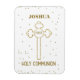 Celebrate a First Communion with this glitter looking cross. Perfect for a boy or girl, this white gift, souvenir, giveaway and party essential has digitally created sparkling gems throughout.