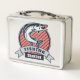 This is a standard metal lunchbox that appears to work just fine. We designed this box ourselves with an uploaded photo and custom text on the front and back. It looks absolutely beautiful except the front of the lunchbox is not centered like it shows in the photo. The print borders don't align with the inset flat part of the box where the preview photo online showed it perfectly centered in there. The back looks nice and centered though.