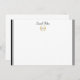 Custom name flat note card shown in white with a slim black double border trim also with a golf inspired winners wreath print.