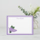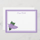 Custom Name Flat Note Card is shown in white with a purple double border trim and a lovely purple lilac flowers print.