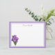 Custom Name Flat Note Card is shown in white with a purple double border trim and a lovely purple crocus flowers print.