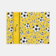 Modern and trendy Custom name sports random black and white soccer balls pattern yellow background and with yellow stripe personalized with just add your name gifts or monogram gifts or your initials for a unique gift. Sports gift ideas for men and boys and girls.