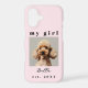 Cute personalized premium look one photo pastel pink iPhone case with funny dog or any pet quote saying in modern black typography, customized name of the dog in trendy calligraphy handwritten script and established year when she entered in your family as a beloved member. The phrase “my girl” is heartfelt emotional, playful and modern. The foto template is set for best using a square picture. Stylish feminine girly pretty vibe and color of the case. Unique modern monochrome electronic tech accessory to protect your cellphone or as a thoughtful custom gift idea under 30 dollars for her. It could be a sweet sentimental keepsake of the favorite and much loved pet, a real member of the family. Having his adorable cute portrait on the phone case it is always close to you, to cheer you up. This cellphone case can become thoughtful birthday, or Christmas, or graduation or even retirement gift for a female dog owner, pet lover enthusiast.
