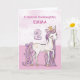 A sweet pink pony just like your goddaughter is prancing with the number two! Gold looking details are woven in her mane and tail. Perfect card to wish your goddaughter her 2nd birthday! Personalize this card with your goddaughter’s name.