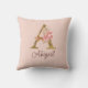 Custom Name Gold Foil Blush Pink Roses Letter A Throw Pillow