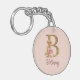 Custom Name Gold Foil Blush Pink Roses Letter B Keychain
