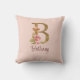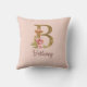 Custom Name Gold Foil Blush Pink Roses Letter B Throw Pillow