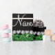 Modern, girly, chic and trendy Custom name green glitter (NOT REAL GLITTER) roller derby girl silhouettes, roller skates, stars, hearts and bows ribbons pattern background and with pretty black diamonds (faux not real diamonds) with sparkly hearts and dots stripe personalized with just add your name gifts or monogram gifts or your initials for a unique gift. Roller derby gift ideas for women and girls. Ideal for roller skating girls / women.