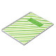 Unique kids office stationery notebook with a lime green and white stripe pattern, custom name template / subject title template. A cute and cool gift for back to school.