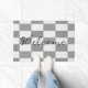 Custom name grey check blocks pattern doormat