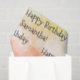 Customizable with recipient's name - Fun, colourful and bright word art happy birthday tissue paper with a gradient colour background - purples, pinks and yellows.