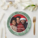 Modern Christmas pine branches and winter foliage bordered custom paper plates will add a festive touch to all you holiday get togethers. Easily customize this plate with your family name and photo.