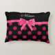Modern, trendy and chic Black hot pink glitter polka dots (not real glitter) pattern background with a pink glitter bow (faux glitter, not real) ribbon personalized with your custom name gifts or monogram gifts or your initials featuring an elegant and traditional fancy lettering. Polka dot gift ideas for women.