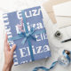 Custom Name Initial Monogram blue White Gift Wrapping Paper