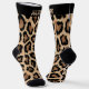 Fun leopard print crew socks with custom name. Decorated with a bold pattern inspired with leopard skin print. They are personalized with a custom name printed in the top area of each sock. Great for anyone who loves animal prints and enjoys making bold statements with their fashion choices.