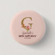 Custom Name Letter G Gold Blush Pink Roses Button