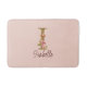 Custom Name Letter I Gold Foil Blush Pink Roses Bath Mat