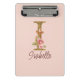 Custom Name Letter I Gold Foil Blush Pink Roses Mini Clipboard