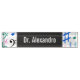 This desk nameplate design features a pattern involving various music notes and music notation symbols coloured a variety of colours. It also features a custom name in white coloured text within a dark coloured area. It could perhaps be used on the desk of a teacher, educator, professor, doctor, lawyer, or some other professional. [~Z0000047]