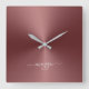 Custom Name Maroon Metallic Style Acrylic Square Wall Clock