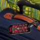 Pleasantly surprised at the quality of the luggage tag. It was exactly as shown and my daughter will be pleased. The address label on the back of the luggage tag was neat and clear.