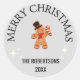 Custom name Merry Christmas gingerbread man grey Classic Round Sticker