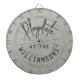 Personalized dartboard with a family name for example. Simple minimalist minimal design with the customizable phrase quote saying Playdate at the family name. Premium look industrial style neutral warm gray and navy blue color scheme with a combination of trendy handwriting script calligraphy and a modern clean sans serif font typography. Playing darts game at family and friends gatherings is fun, relaxing, a true form of self care, healthy habits and wellbeing in the stressful life we have. Connect with real people and make a pause from electronic devices. Perfect addition to your games room when you are hosting the playdates or as a thoughtful gift for a great host. A creative thoughtful useful custom gift under 70 dollars for a newlyweds couple, or housewarming gift for new homeowners. Even great cool wall decoration idea when staging a home for sale, or a real estate agent closing deal present for the buyer.