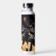 Custom Name Modern Wedding Black Golden Feather Water Bottle