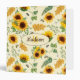 Nom personnalisable et classeur monogramme avec imprimé de tournesols de jardin peints, peigne de miel et abeilles, en jaune, marron et vert.