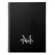 This modern black notebook features a monogram and name in stylish script typography. It is easily customizable.