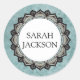 Custom Name Monogram Blue Grey Flower Petals Classic Round Sticker
