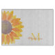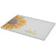 This botanical floral cutting board is decorated with a yellow watercolor sunflower.