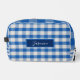 Custom Name monogram Dopp KIT This unique Dopp Kit design is whimsical and stylish. The background consists of an abstract a classic blue background. The front features your custom name or short text in stylish white script on a matching blue band. All colours in this design can be customized and you may further personalize the bag with your choice of font type in the design tool area.