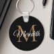 Create your own personalized black round key chain with your custom elegant handwritten script name and monogram.