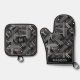 Custom Name & Monogram Industrial Pattern Oven Mitt & Pot Holder Set