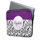 This chic neoprene laptop sleeve features a pattern of a wavy modern rainbow floral tree with a centred initial letter monogram and name. Personalize the case in the text fields with a name and initial, remove one or click customize to select a typeface style, size, and colour you like.