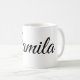 A beautiful minimalist mug featuring a stylish handwritten script name with a small black heart underneath. This elegant and modern design is perfect for everyday use or as a thoughtful personalized gift.