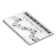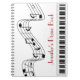 This notebook features a full piano keyboard on the cover, and a swirl of music notes on the top. There is a fully customizable place for or a name or text of your choice.