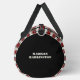 I actually had been searching other sites for a duffle gym bag and I couldn't find any. This one is just what I was looking for with all the features. The inside zip pocket, the outside mesh pocket and LOTS of room inside. Love the printing. Really like how the floral print turned out.