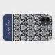 Custom Name Navy Black White Damask Case-Mate iPhone Case