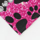 Custom name neon hot pink glitter black dog paws fleece blanket