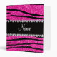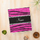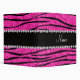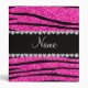 Modern neon hot pink glitter zebra stripes pattern (animal print) (not real glitter) with a black diamonds ribbon stripe (not real diamonds) with hearts and dots personalized with your name gifts or monogram gifts or your initials or you can add your own personal text. Glitter zebra gift ideas for girls, teenagers and women.