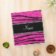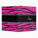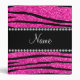 Modern neon hot pink glitter zebra stripes pattern (animal print) (not real glitter) with a black diamonds ribbon stripe (not real diamonds) personalized with your name gifts or monogram gifts or your initials or you can add your own personal text. Glitter zebra gift ideas for girls, teenagers and women.