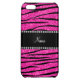 Custom name neon hot pink glitter zebra stripes iPhone case