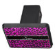 Modern and trendy personalized custom name neon pink glitter leopard spots pattern (animal print) with a black diamonds stripe (not real diamonds) with hearts and dots personalized with your name gifts or monogram gifts or your initials. Pretty girly leopard print gift ideas.