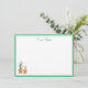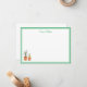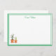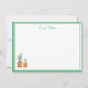 Custom Name Note Card shown in the basic matte white card paper with a Green border trim and has a potted spring flowers art print.
