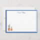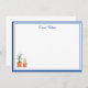 Custom Name Note Card shown in the basic matte white card paper with a Sapphire Blue border trim and has a potted spring flowers art print.