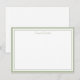 Custom name Note Card shown in white with a lovely sage colour double border trim.