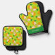 Custom name orange pears on green oven mitt & pot holder set