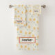 Custom name orange tropical leaves cream bath towel set